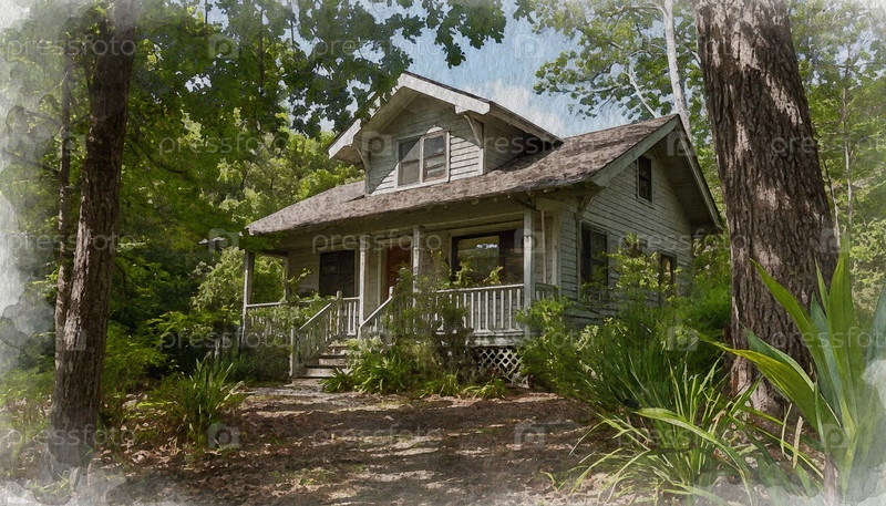 Старый дом в лесу, акварельная иллюстрация, сгенерированная ИИ