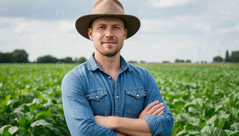 Мужчина-фермер в поле летом, сгенерированный ИИ