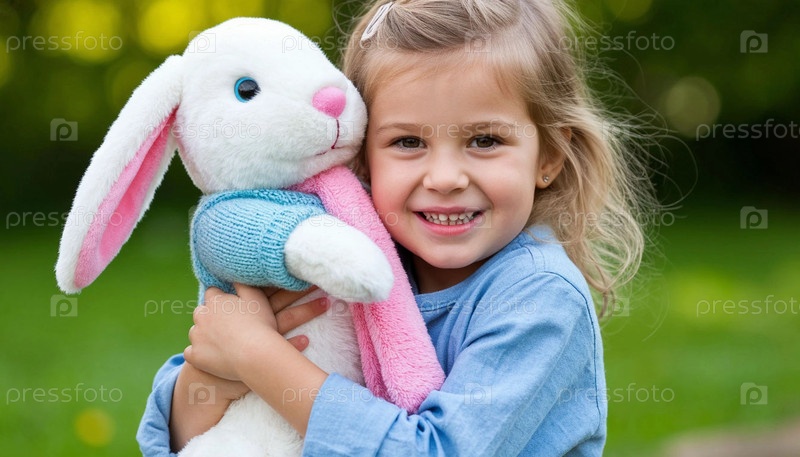 Маленькая девочка с огромной игрушкой-кроликом, созданной ИИ