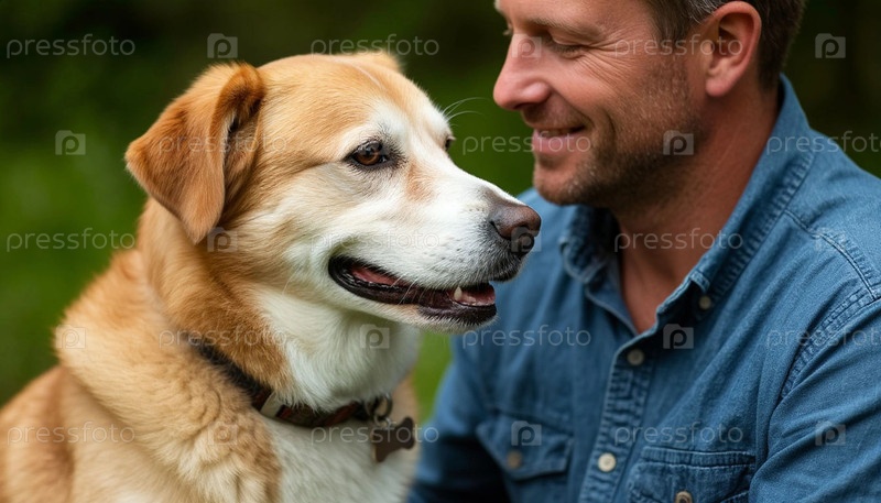 Человек со своей собакой в природе, созданный ИИ