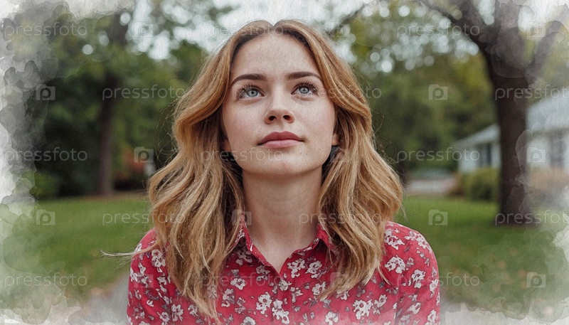 Портрет девушки на природе крупным планом, акварель, сгенерированный ИИ