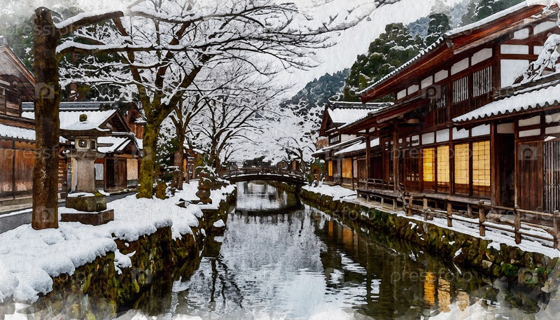Вид на город Киото в Японии, акварельная иллюстрация, созданная ИИ