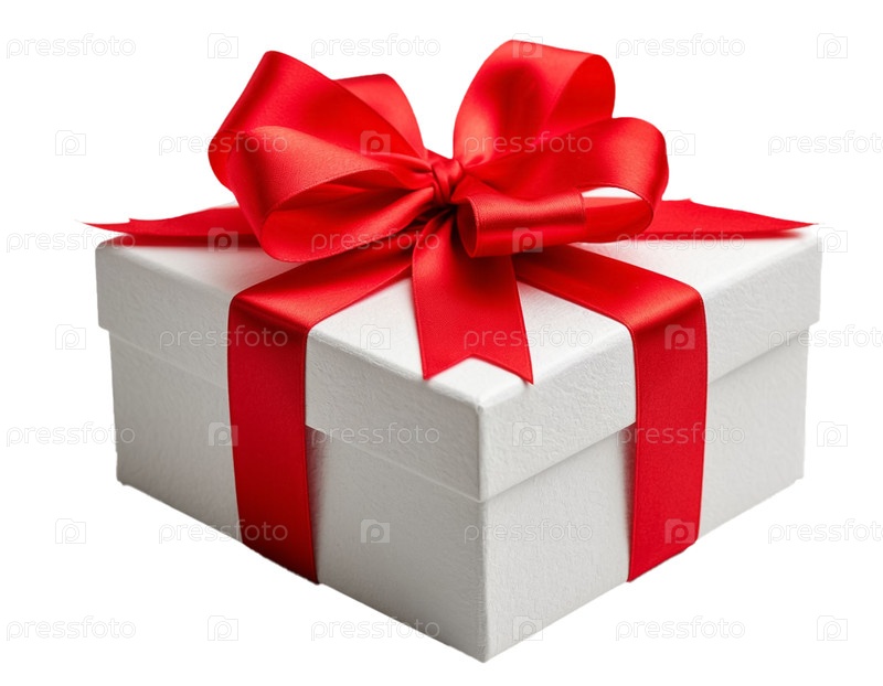 Подарочная коробка с красной лентой на белом фоне