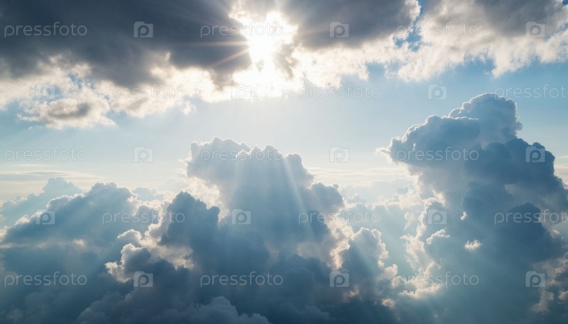 Облака и солнечные лучи, естественный фон. Сгенерированный ИИ
