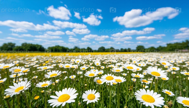 Поле с ромашками и голубым небом. Сгенерированный ИИ