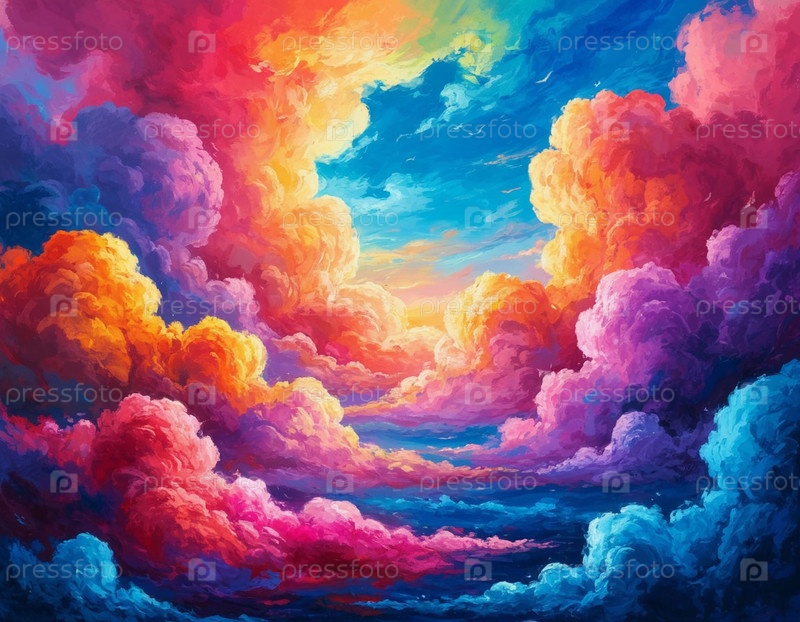 Красочные облака абстрактной цифровой живописи. Генерируется ИИ