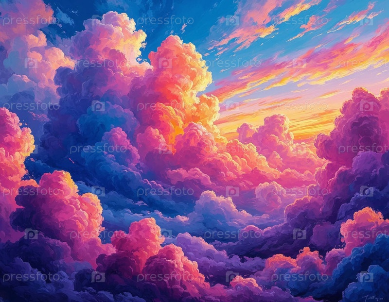 Красочные облака абстрактной цифровой живописи. Генерируется ИИ