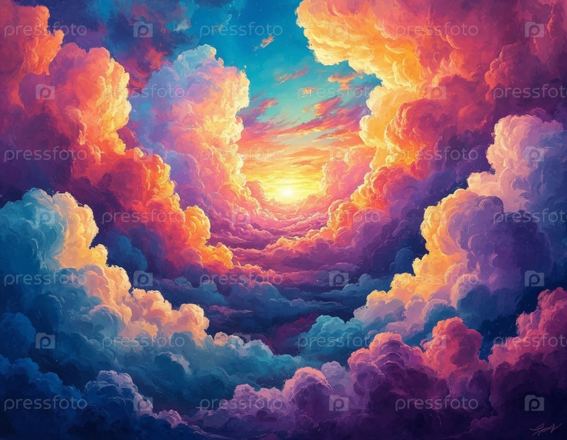Красочные облака абстрактной цифровой живописи. Генерируется ИИ