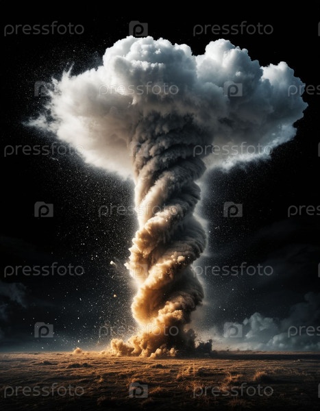 Торнадо на черном фоне. Сгенерированный ИИ