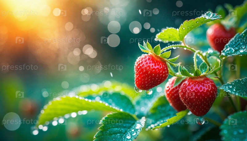 Клубника в саду после дождя. Генерируется ИИ