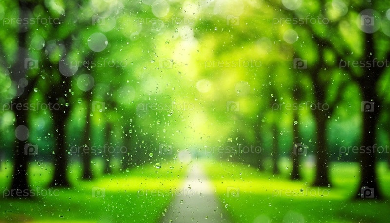 Размытые зеленые деревья после дождя. Сгенерированный ИИ