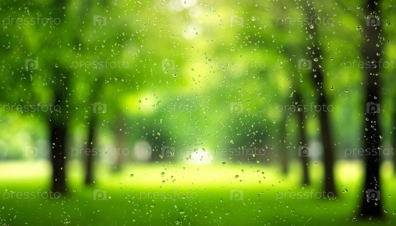Размытые зеленые деревья после дождя. Сгенерированный ИИ