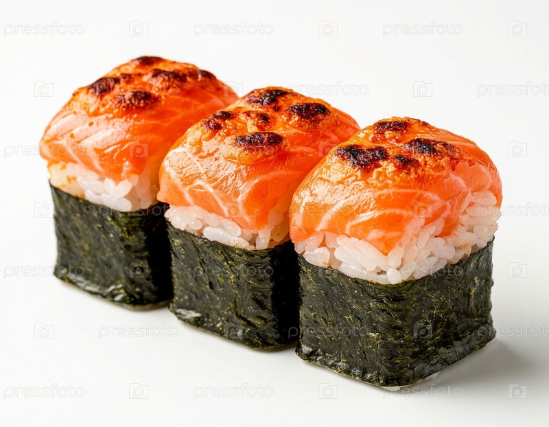 Суши на белом фоне, японская еда. Сгенерированный ИИ