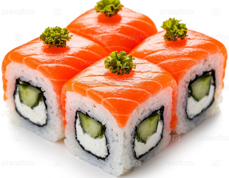 Суши на белом фоне, японская еда. Сгенерированный ИИ
