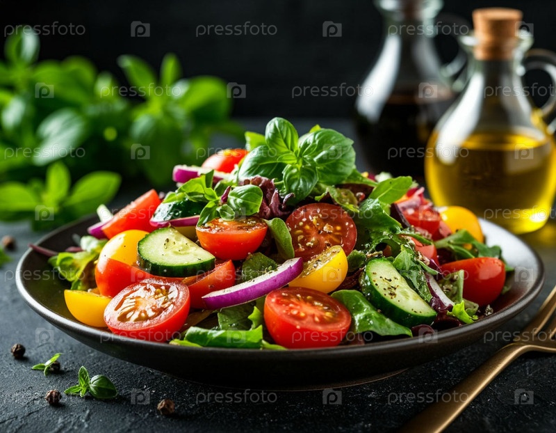 Овощной салат с оливковым маслом. Сгенерированный ИИ