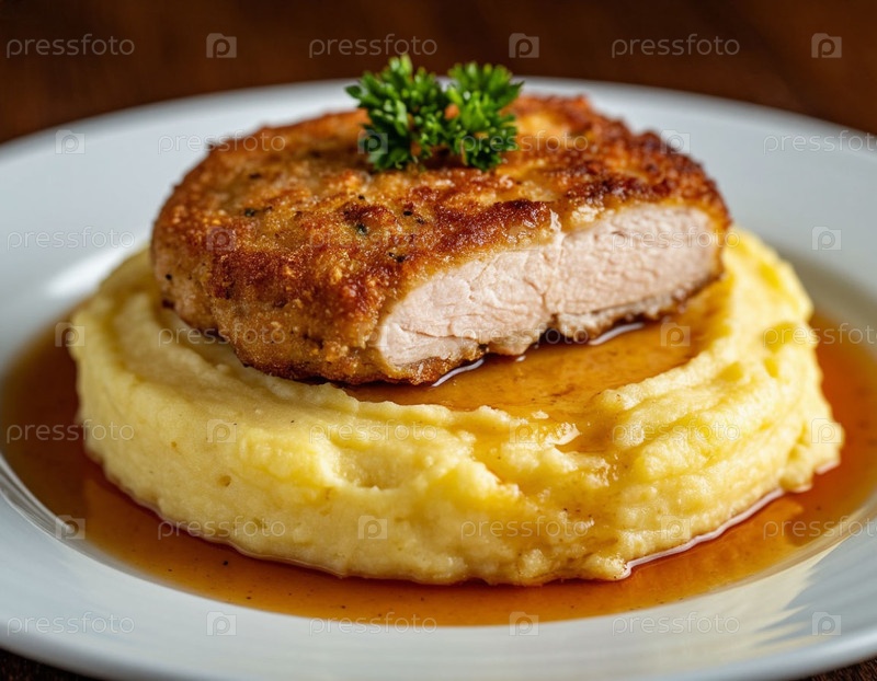 Пюре с куриной котлетой на тарелке. Создано AI