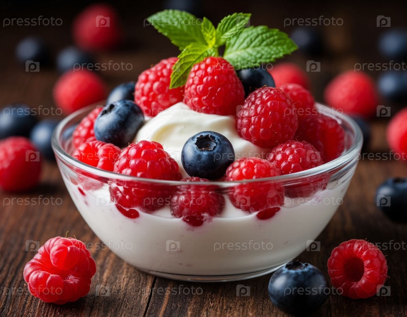Йогурт с ягодами. Создано AI