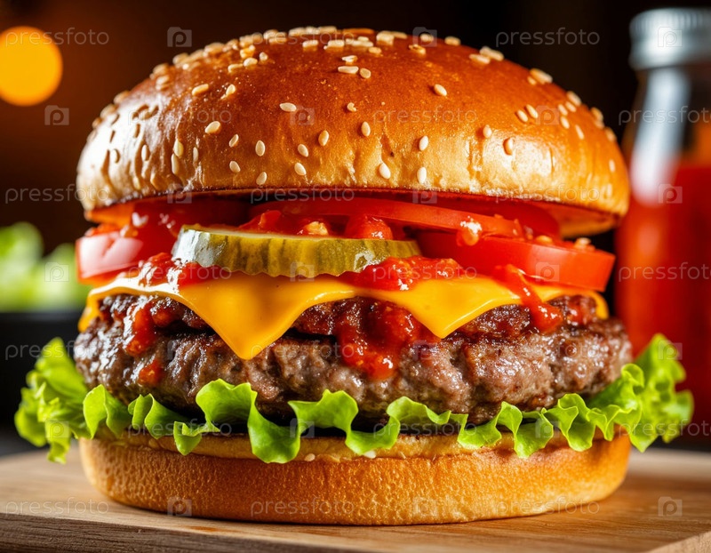 Бургер с говяжьим пирогом. Создано AI