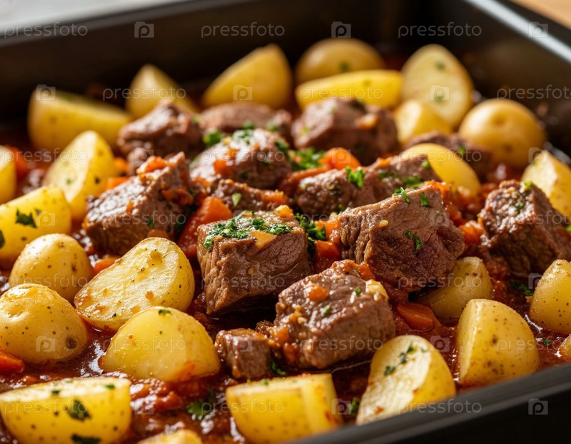 Картофель тушат мясом на выпечке. генерируемый