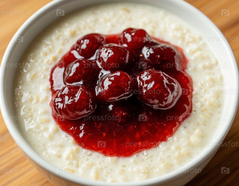 Молочная каша с вареньем, вид сверху