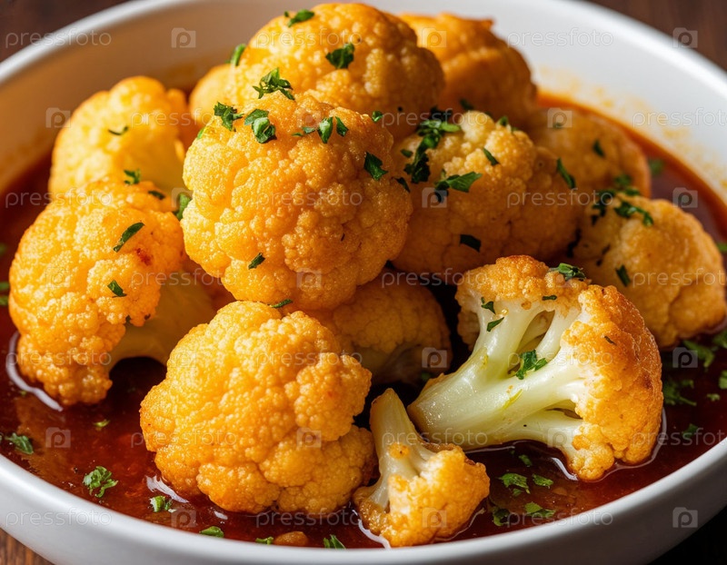 Жареная цветная капуста в соусе. Создано AI