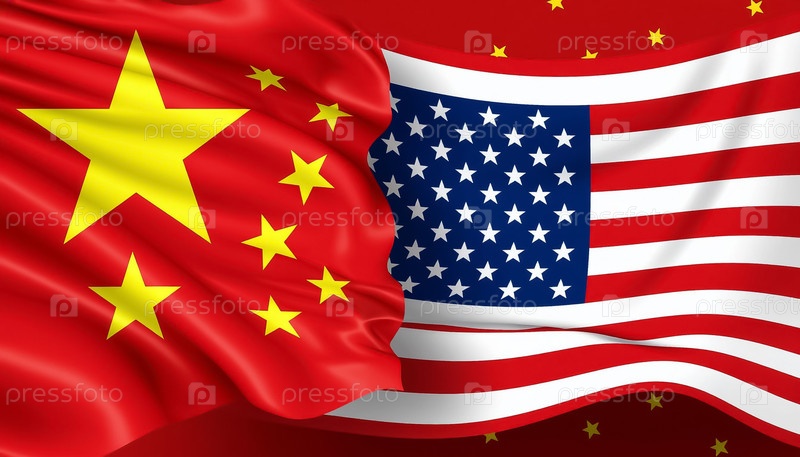 Два флага США и Китая, борьба за первенство и тарифная война. Риск краха мировой торговой системы