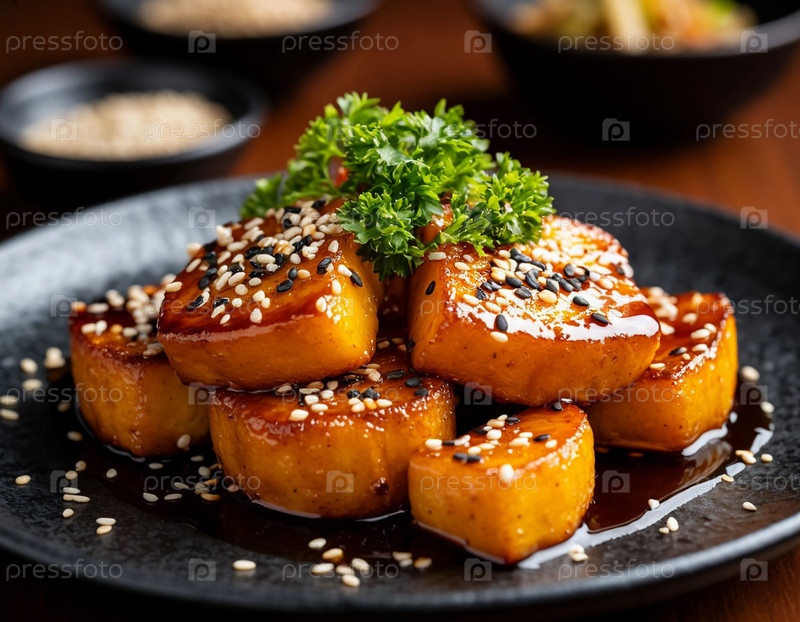 Японская жареная тыква в соевом соусе и семенах кунжута, генерируемые ИИ