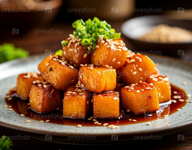 Японская жареная тыква в соевом соусе и семенах кунжута, генерируемые ИИ