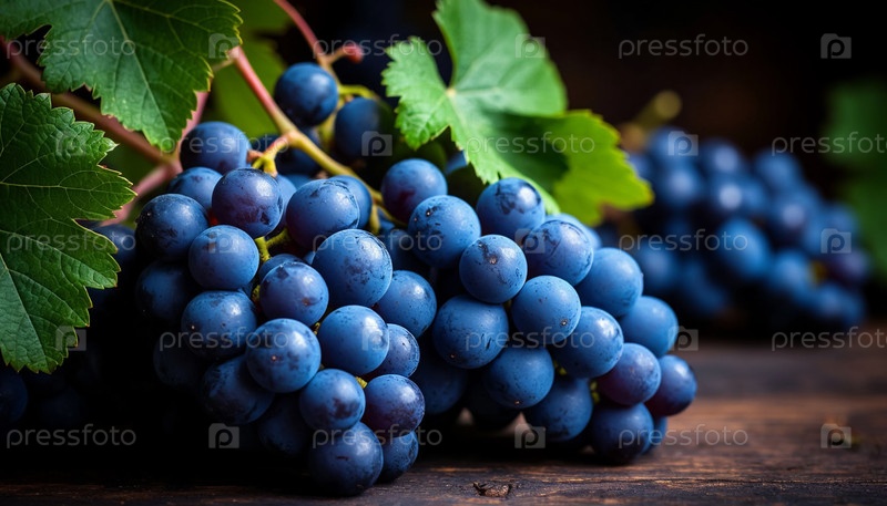 Куча винограда на деревянном столе, созданный ИИ,