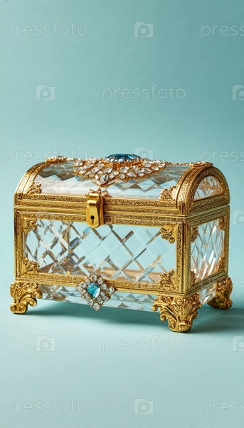 Хрустальная грудь на пастельном серо-голубом фоне. Сгенерированный ИИ