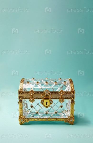 Хрустальная грудь на пастельном серо-голубом фоне. Сгенерированный ИИ