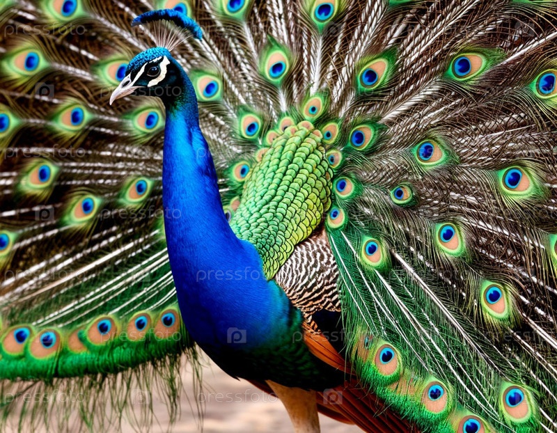 Пикок расправил хвост крупным планом. Генерируется ИИ