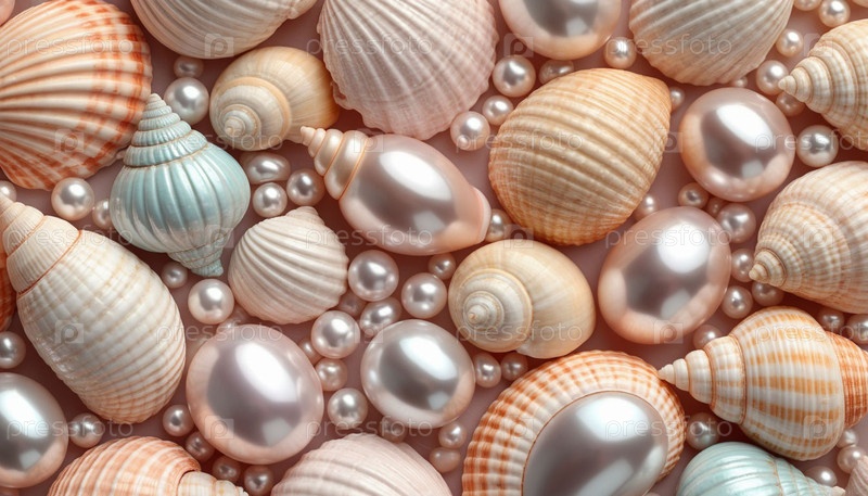 Морской фон из раковин и жемчуга, фактура. ИИ