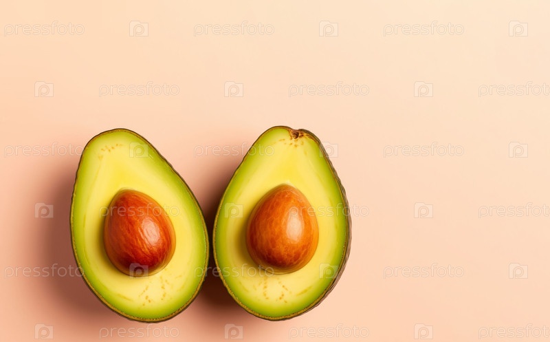 Авокадо наполовину на пастельном кремовом фоне, копировальное пространство. Генерируется ИИ