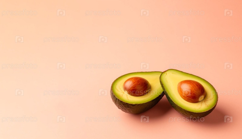 Авокадо наполовину на пастельном кремовом фоне, копировальное пространство. Генерируется ИИ