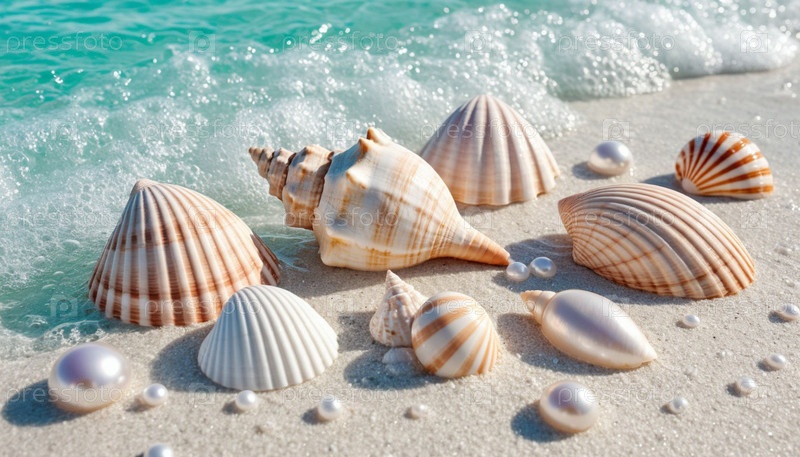 Морские ракушки на берегу пляжа закрываются, фон. ИИ