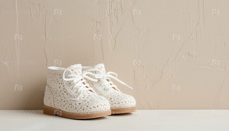 Белые кружевные детские бутсы на минималистском светлом фоне. ИИ