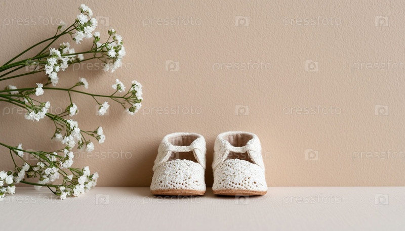 Белые кружевные детские бутсы на минималистском светлом фоне. ИИ