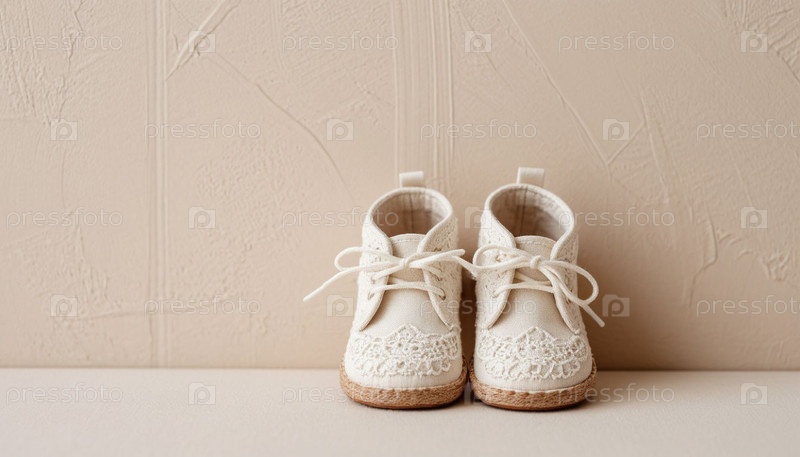 Белые кружевные детские бутсы на минималистском светлом фоне. ИИ
