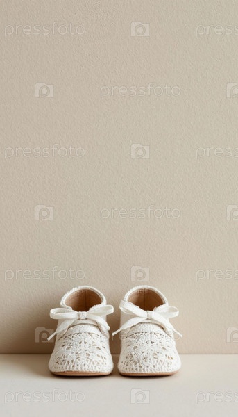 Белые кружевные детские бутсы на минималистском светлом фоне. ИИ