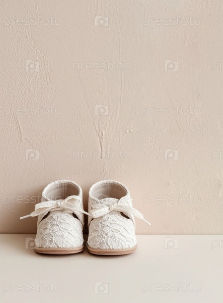 Белые кружевные детские бутсы на минималистском светлом фоне. ИИ