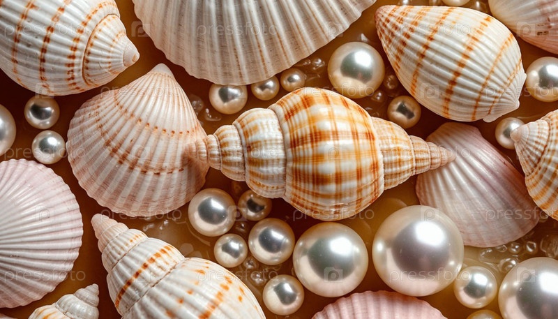 Морской фон из раковин и жемчуга, фактура. ИИ