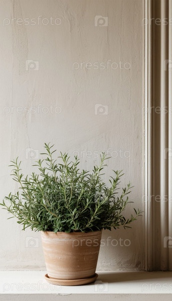 Минималистичная фоновая вертикаль с растением на фоне горшка, обои. ИИ