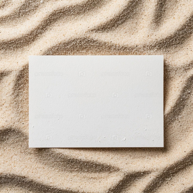Белый макет открытки на морском песке на пляже. ИИ
