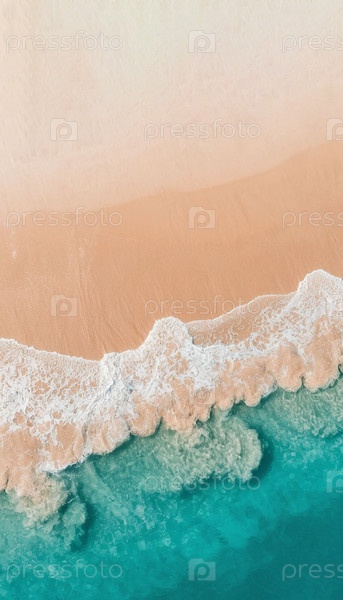 Вид на волны и прибрежный песок сверху, фон. ИИ