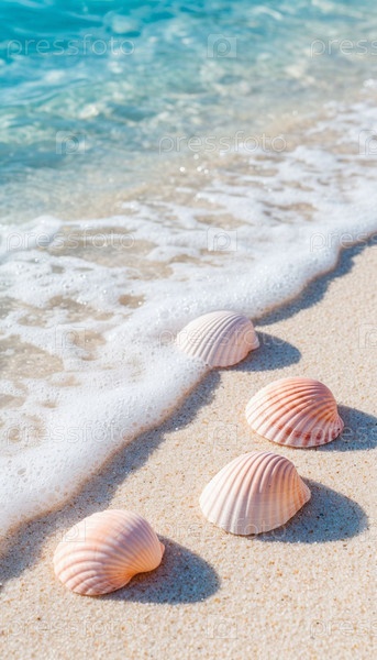 Пастельные ракушки и лазурные волны с пеной. ИИ