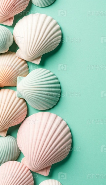 Ракушки в пастельных тонах на синем фоне. ИИ