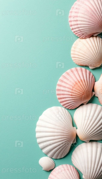 Ракушки в пастельных тонах на синем фоне. ИИ