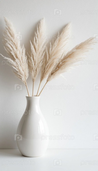Минималистический фон пустой стены и высушенных цветов в вазе. ИИ