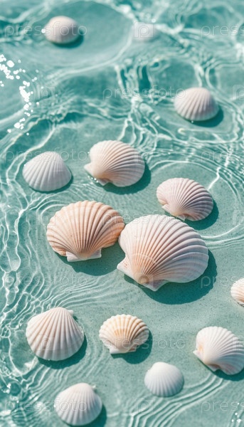 Ракушки в пастельных тонах, минималистский фон выше. ИИ
